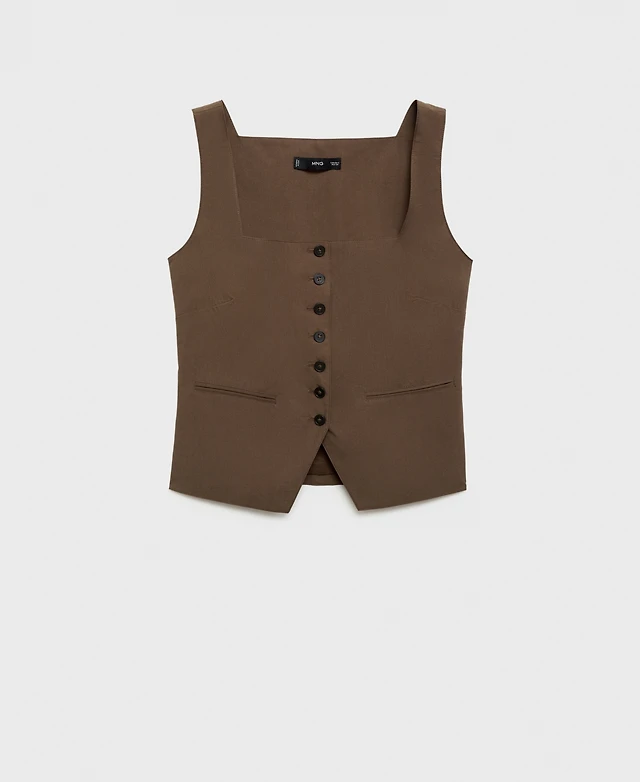 Ivonne Women's Tailored Sleeveless Vest with Button Closure