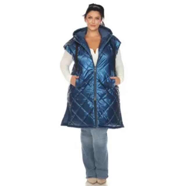 White Mark Women's Diamond Quilted Hooded Long Puffer Vest Jacket