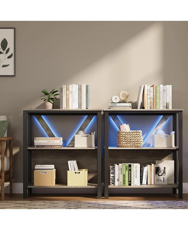 gaomon 4-Tier Retro Bookshelf with Led Light, Industrial Rustic Bookcase, Open Wood Storage Rack for Bedroom or Living Room