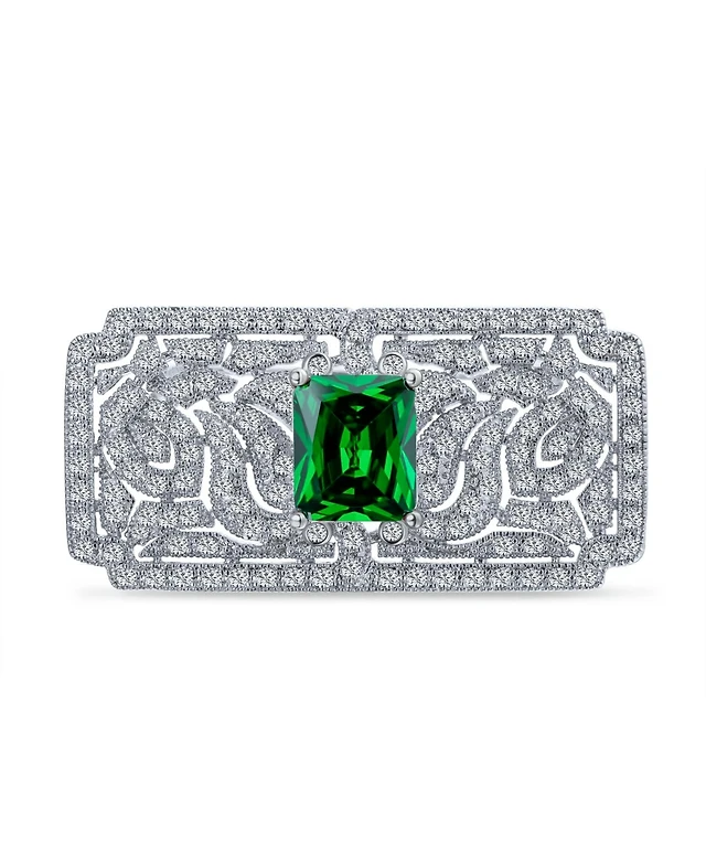 Bling Jewelry Floral Heart Filigree Cz Brooch Pin Silver Brass
