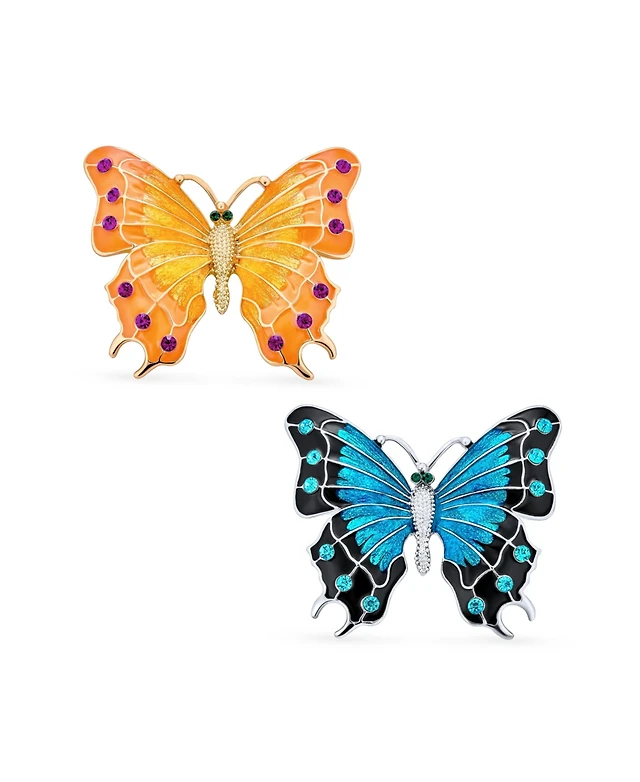 Bling Jewelry Large Multi Color Butterfly Brooch Pin Crystal Accent Enamel Gold Plated