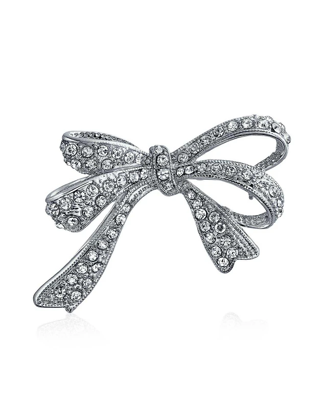 Bling Jewelry White Crystal Statement Ribbon Bow Brooch Pin Silver Plated