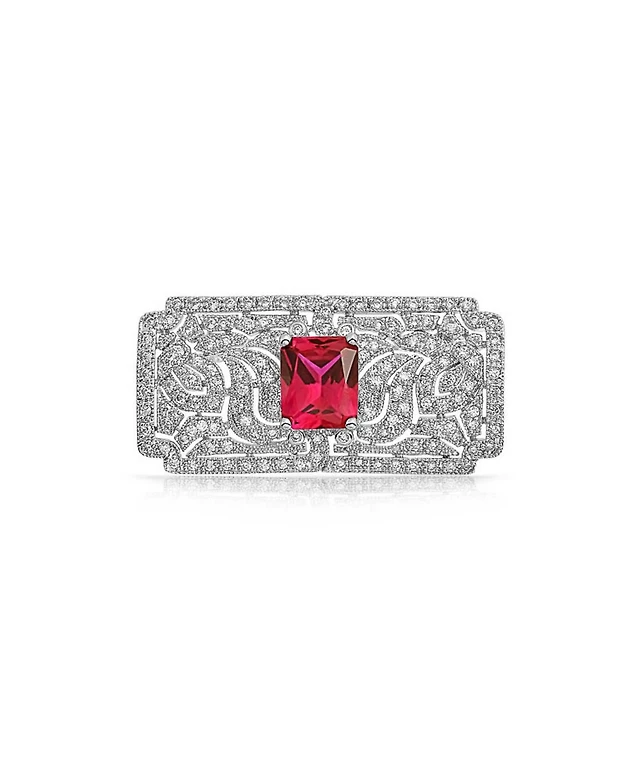 Bling Jewelry Art Deco Style Ruby Cz Rectangle Filigree Statement Brooch Pin