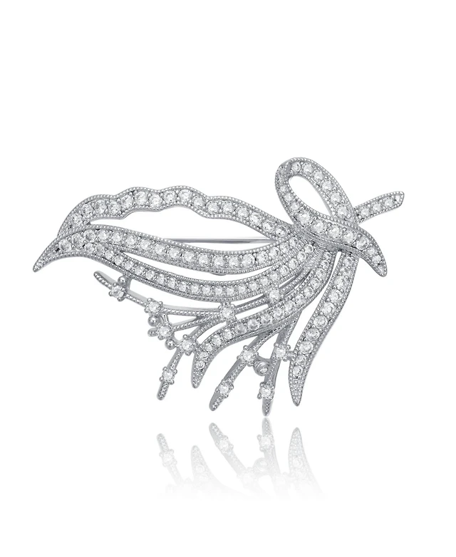 White Gold Plated with Clear Cubic Zirconia Flowing Petals Floral Brooch