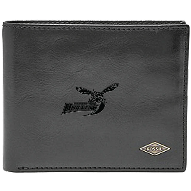 Men's Fossil Black Delaware State Hornets Ryan RFID Flip ID Bi-Fold Wallet