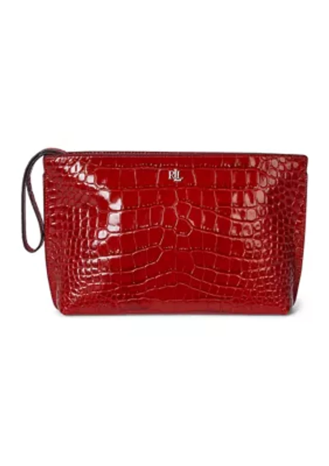 Crocodile-Embossed Leather Large Pouch