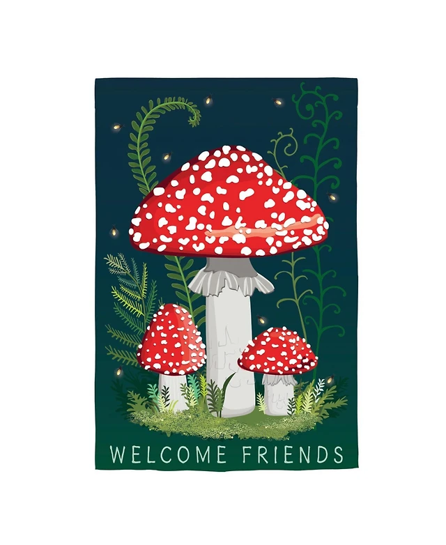 Evergreen Welcome Friends Mushroom Garden Linen Garden Flag