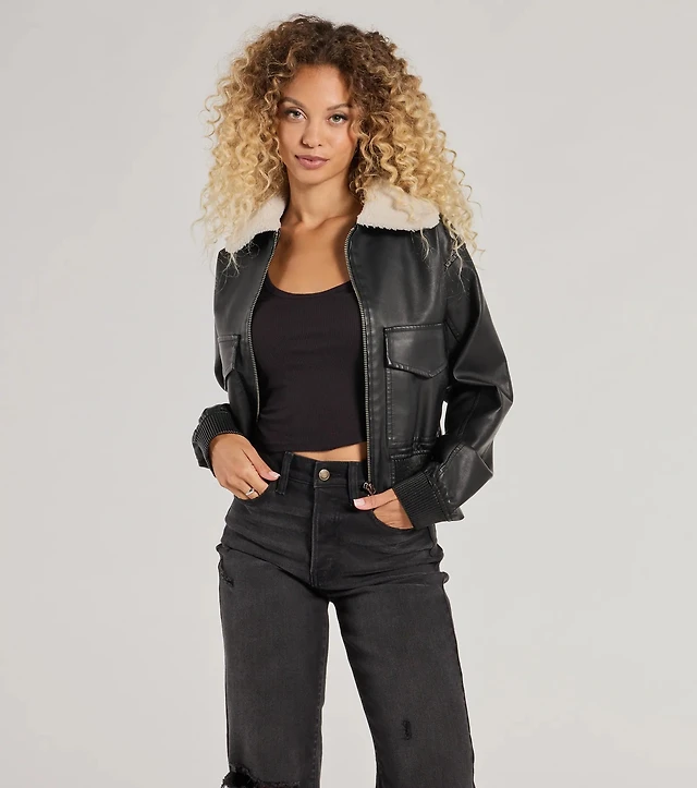 Bar Iii Women's Faux-Leather Zip-Front Bomber Jacket, Macy's Exclusive