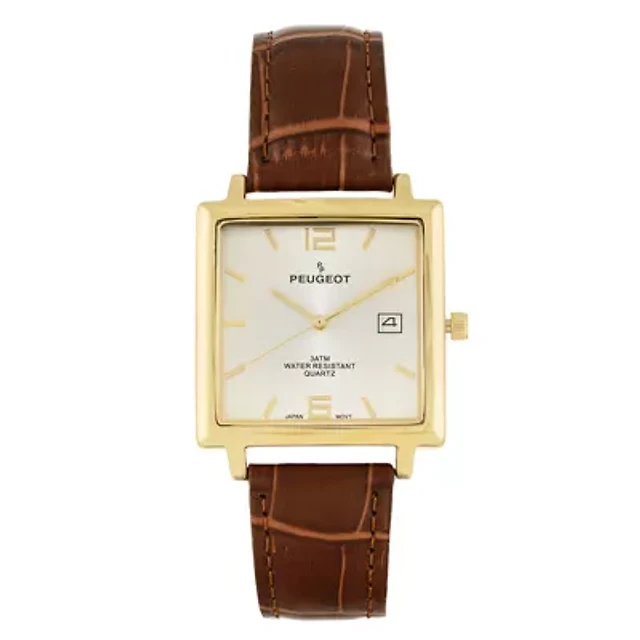 Peugeot Men's 30X40mm Gold Tank Shape Watch with Black Strap
