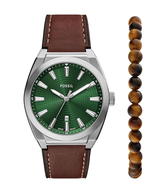 Fossil Men's Minimalist Brown Leather Strap Watch 44mm