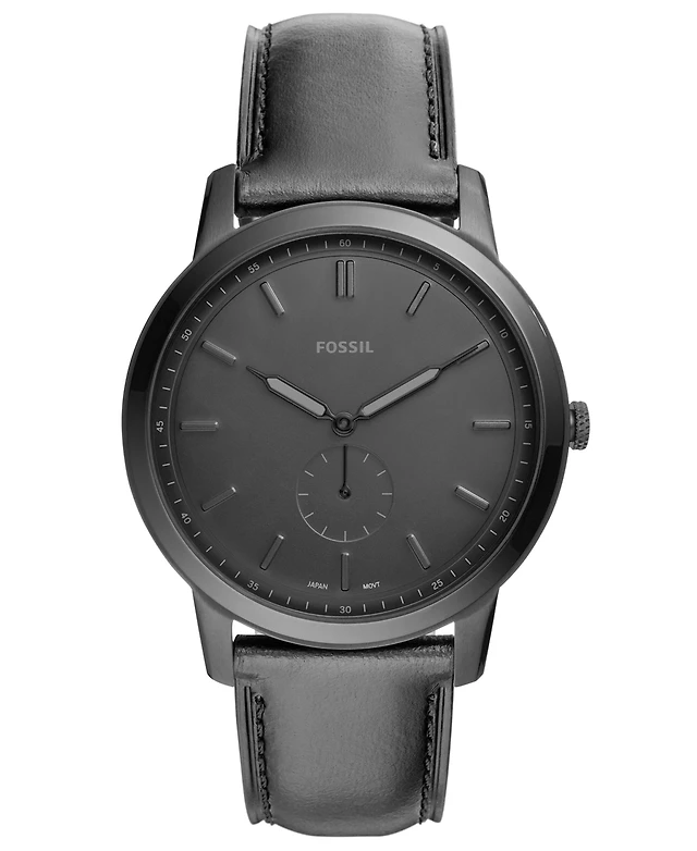 Fossil Men's Minimalist Black Leather Strap Watch 44mm