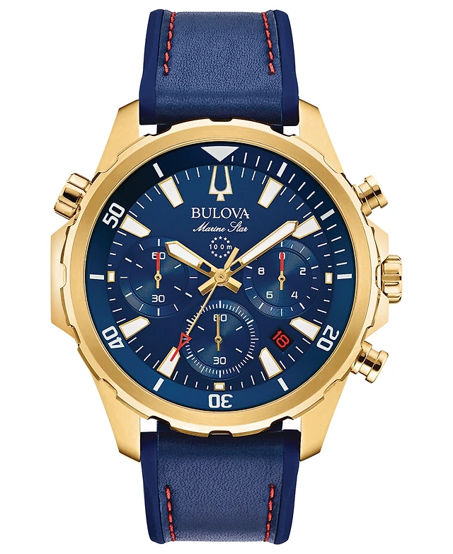 Spinnaker Men's Hull Chrono Navy Blue Genuine Leather Strap Watch 42mm