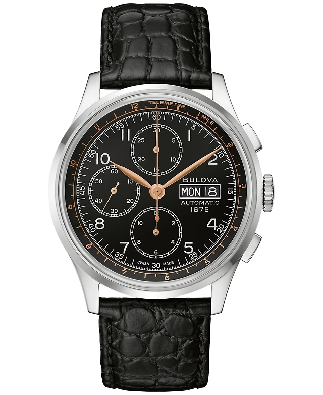 Bulova Men's Classic Frank Sinatra Rat Pack Automatic Black Leather Strap Watch 40mm