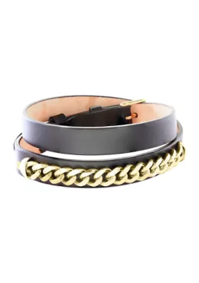 Rhona Sutton Leather with Chain Stainless Steel Bracelet