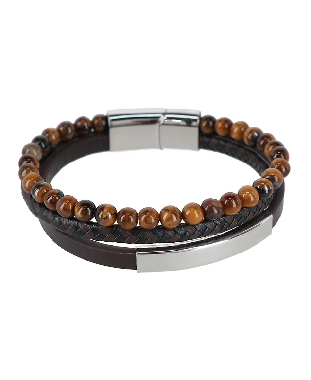 Lucky Brand Tiger s Eye Beaded and Leather Wrap Bracelet - Braided Leather & Stone Jewelry for Men
