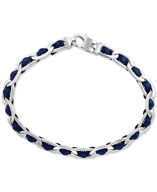 Esquire Men's Jewelry Blue Leather Woven Bracelet in Sterling Silver, Created for Macy's