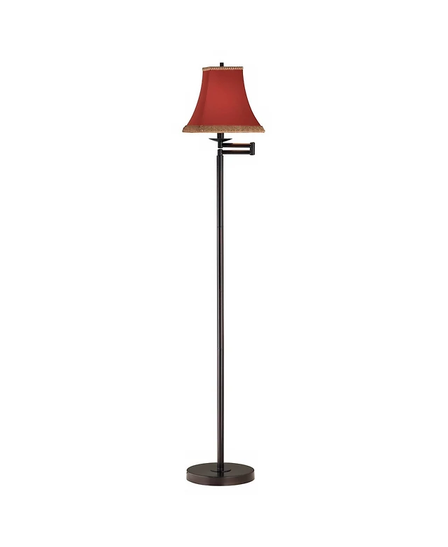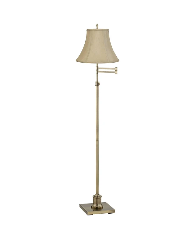360 Lighting Swing Arm Floor Lamp Adjustable Height 70" Tall Antique Brass Fine Burlap Fabric Empire Shade for Living Room Reading Bedroom