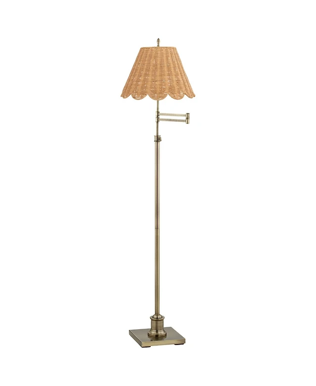 360 Lighting Swing Arm Floor Lamp 70" Tall Antique Brass Fine Burlap Cotton Blend Fabric Empire Shade for Living Room Reading Office