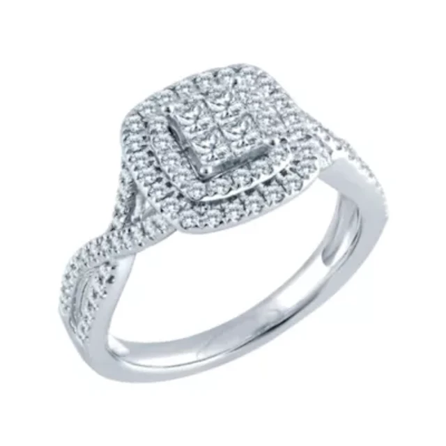 Womens 1 CT.T.W. Natural Diamond Cushion Halo Engagement Ring