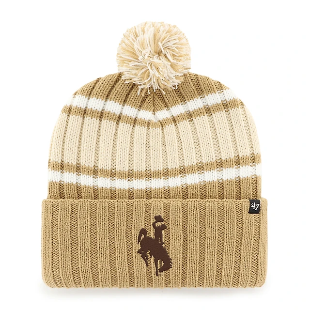 Men's '47 Khaki Wyoming Cowboys Plateau Cuffed Knit Hat with Pom