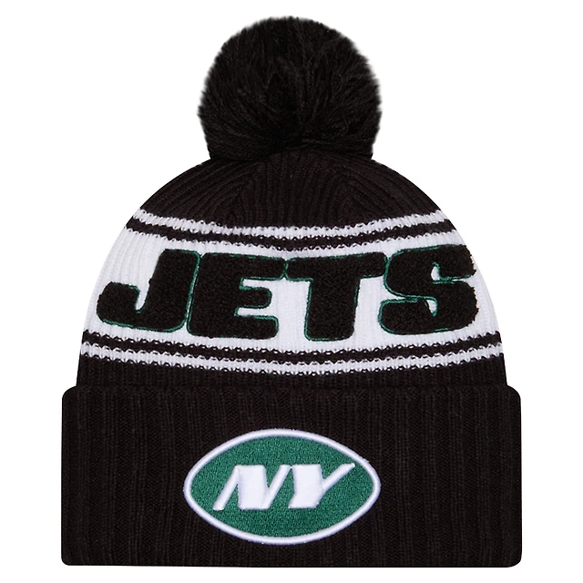 Men's New Era Black New York Jets 2024 Sideline Cuffed Knit Hat with Pom