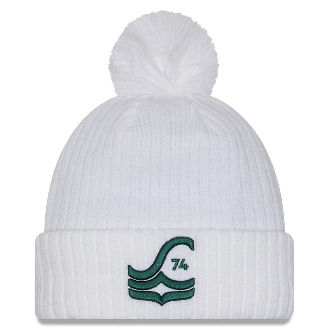 Men's New Era White Seattle Sounders FC 2025 Jersey Hook Cuff Knit Hat with Pom