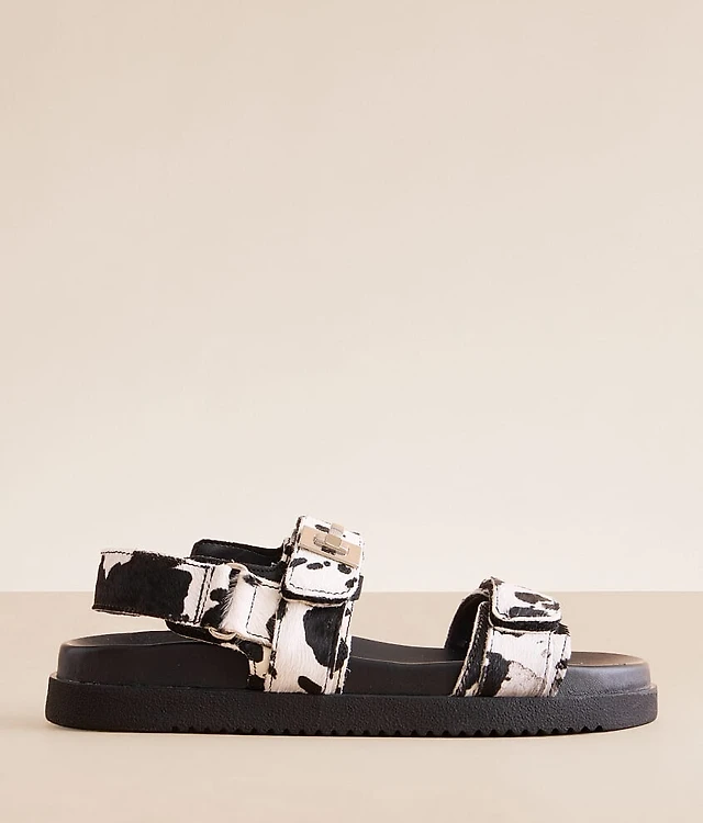 Sam Edelman Darla Leopard Print Calf Hair Criss Cross Buckle Hardware Slide Sandals