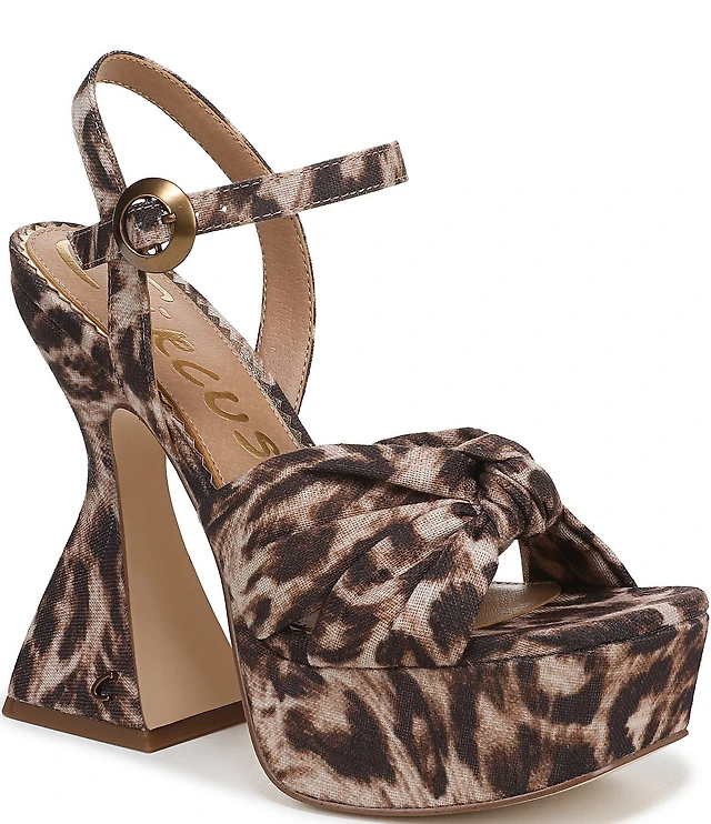 Sam Edelman Savannah Leopard Glitz Fabric Ankle Strap Platform Dress Sandals