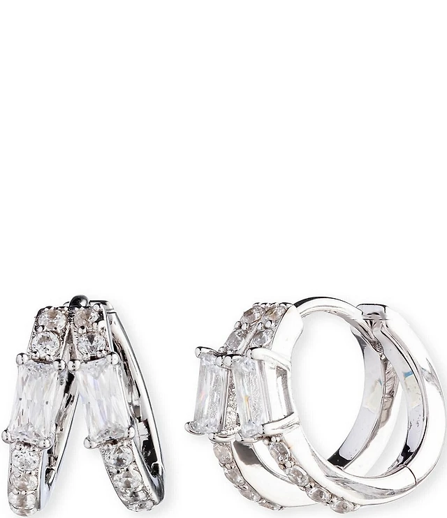 2028 Silver-Tone Crystal Diamond Drop Lever back Earrings