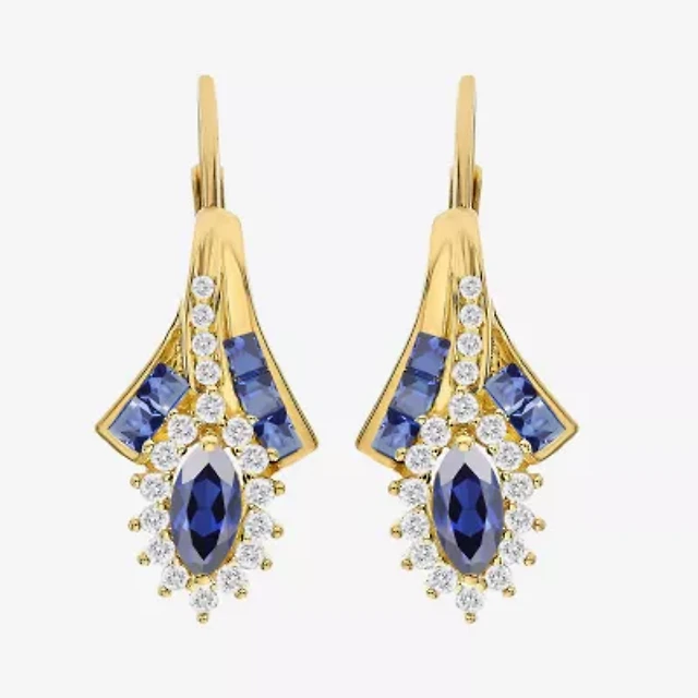 Emerald-Cut Blue Lab-Created Sapphire & White Lab-Created Sapphire Drop Earrings Sterling Silver