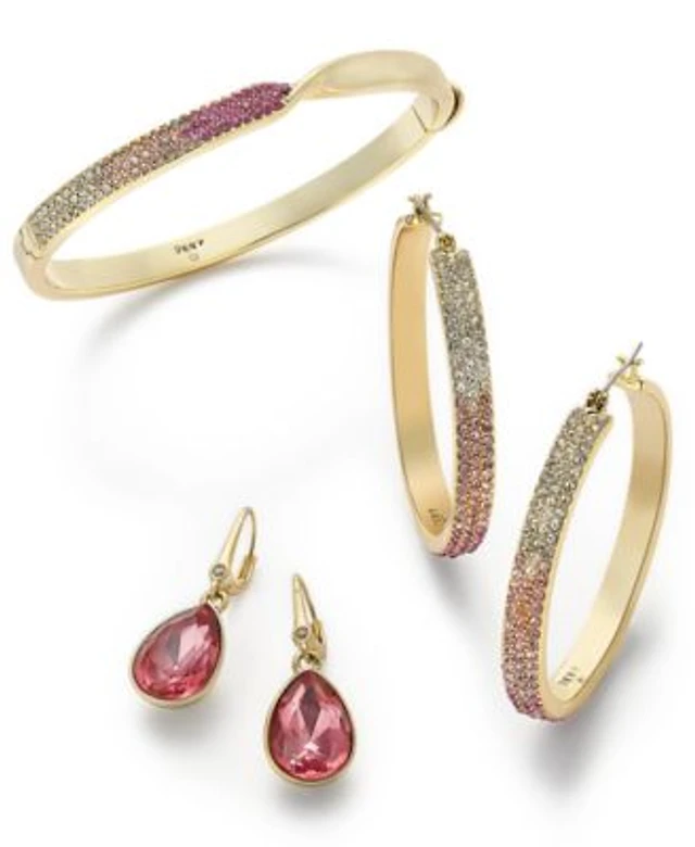 Dkny Gold Tone Pink Ombre Crystal Jewelry Separates