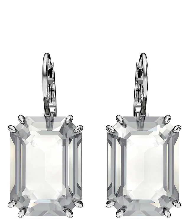Simulated Gemstone Square Lever Back Silver Plate Earrings