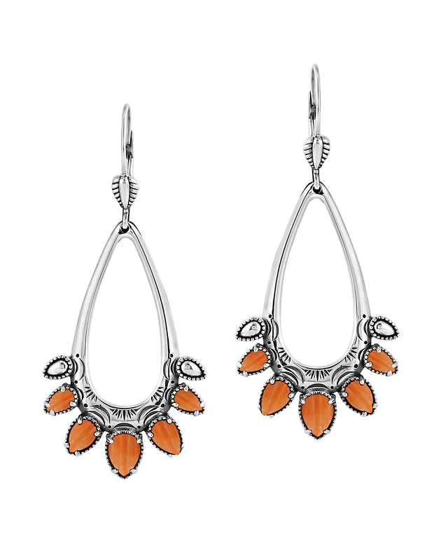 Bling Jewelry 3ct Red Natural Coral Dome Oval Western Style Bezel Set Lever Back Dangle Earrings For Women Sterling Silver