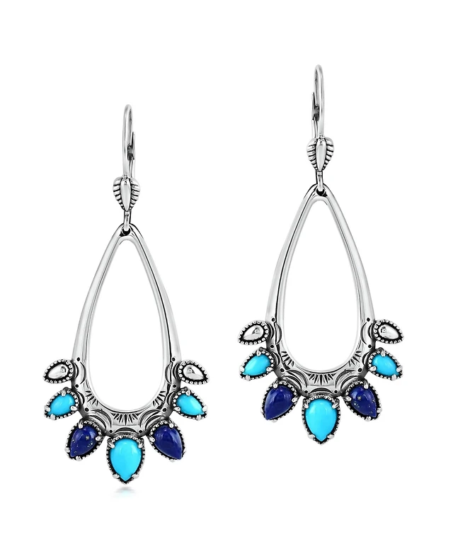 Bling Jewelry Western Style Multicolor Purple Natural Turquoise Oval Framed Dangle Lever Back Earrings Oxidized Sterling Silver