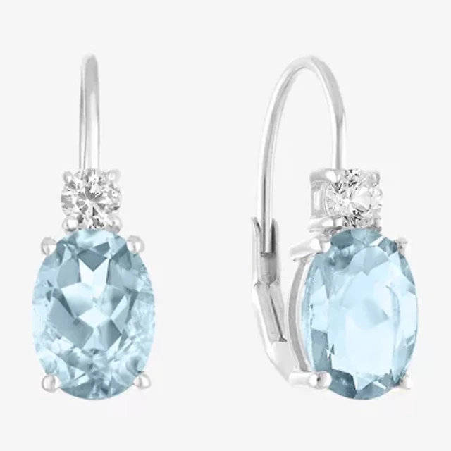 2028 Silver Tone Light Blue Oval Crystal Earrings