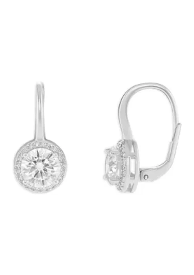 Silver Treasures Womens Cubic Zirconia Sterling Silver Round Drop Earrings