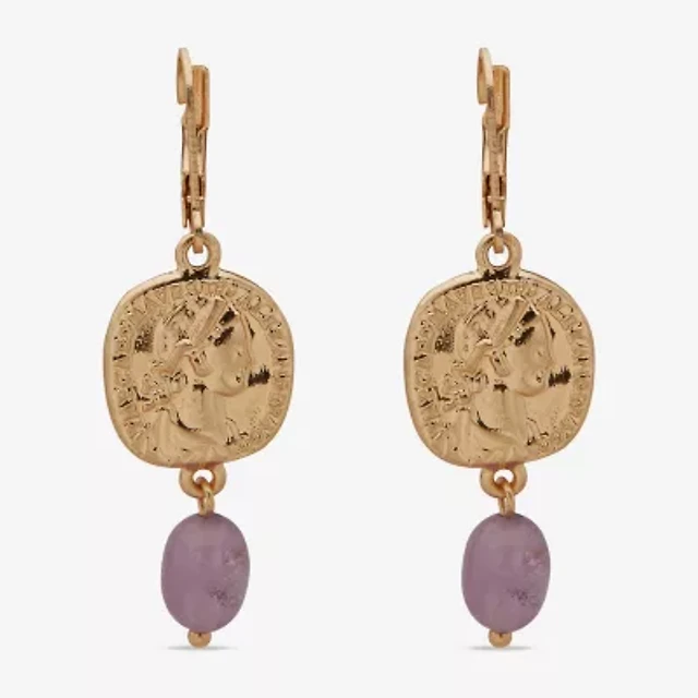 Monet Jewelry Womens Purple Glass Drop Earrings