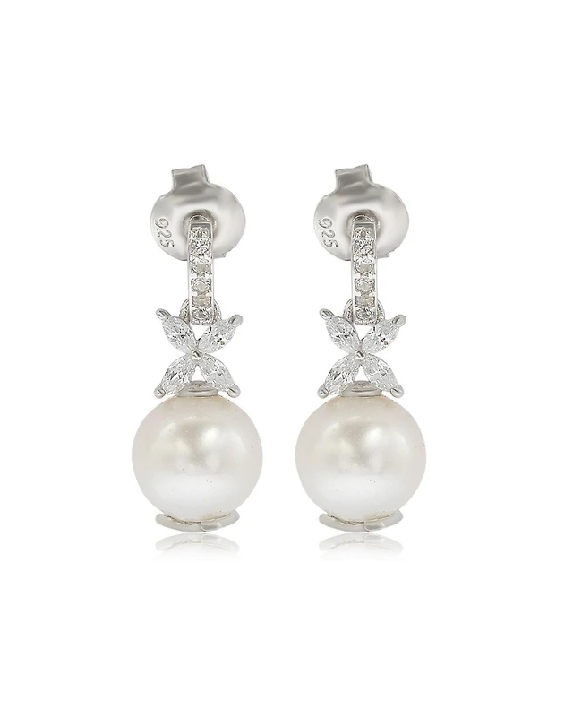 Suzy Levian Sterling Silver White Cubic Zirconia Oval Shape Drop Earrings