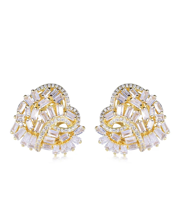 Suzy Levian New York Cubic Zirconia Clear Abstract Flower Motif Drop Earrings