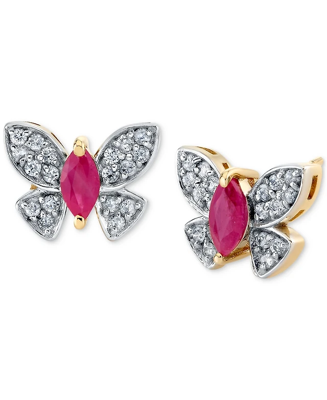 Macy's White Diamond (3/8 ct. t.w.) and Sapphire (0.01 ct. t.w.) Earrings in 10k White Gold