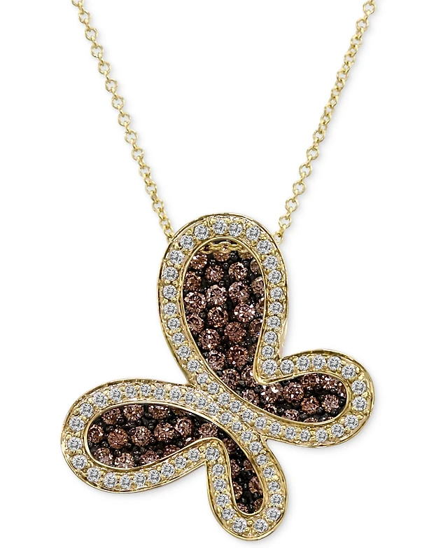 Le Vian Ombre Chocolate Ombre Diamond & Vanilla Diamond Butterfly 20" Adjustable Pendant Necklace (3/4 ct. t.w.) in 14k Rose Gold