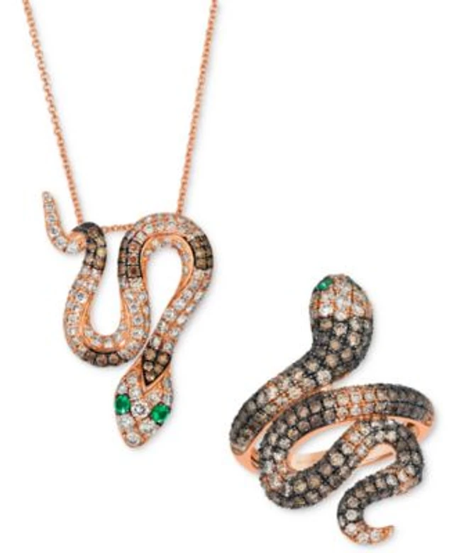 Le Vian Chocolate Diamond, Nude Diamond, & Blackberry Diamond Snake Adjustable 19" Pendant Necklace (1/4 ct. t.w.) in 14k Gold