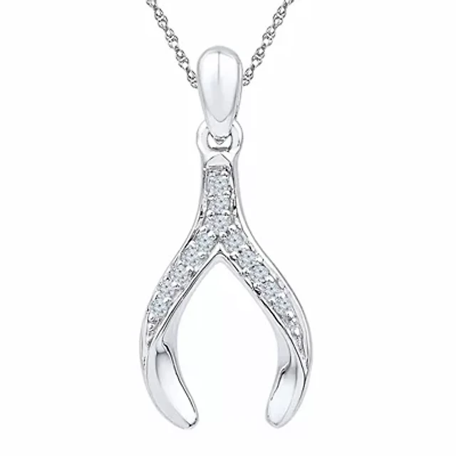 Womens Diamond Accent Natural White Diamond Sterling Silver Wishbone 18 Inch Pendant Necklace