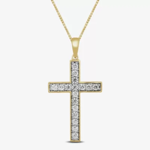 Womens 1/ CT. T.W. Lab Grown White Diamond 10K Gold Cross 18 Inch Pendant Necklace