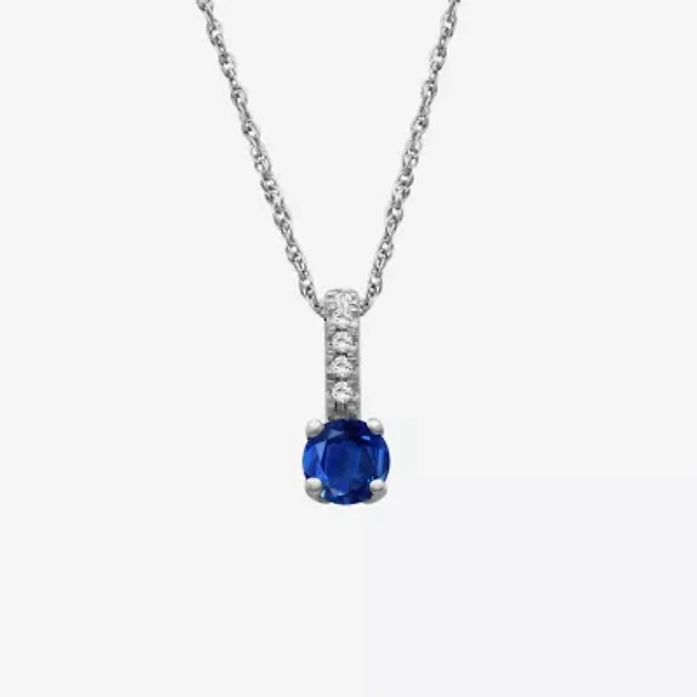6.5mm Blue Topaz and Diamond Accent Frame Pendant in Sterling Silver