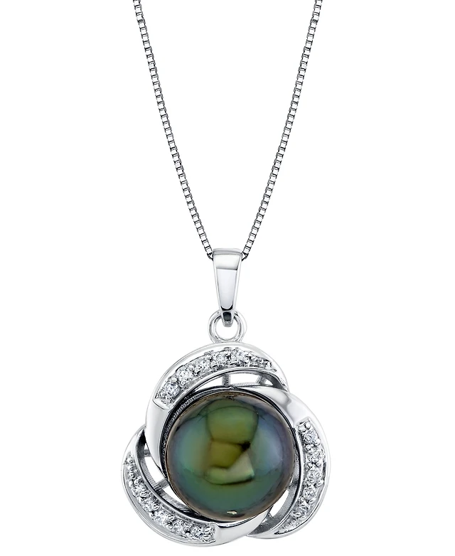 14k Gold Necklace, Cultured Golden South Sea Pearl (13mm) and Diamond (1/3 ct. t.w.) Pendant