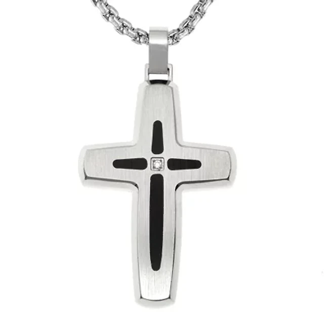 Esquire Men's Jewelry Diamond Accent Cross 22" Pendant Necklace in Stainless Steel & Black Ion-Plate, Created for Macy's