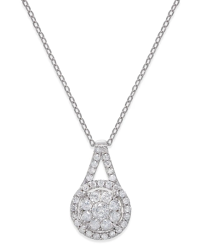 Diamond Blossom (G Womens Diamond Accent Lab Grown White Diamond 10K Gold Pear 18 Inch Pendant Necklace