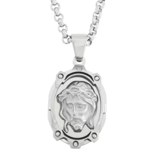 Esquire Men's Jewelry Diamond Accent Cross 22" Pendant Necklace in Stainless Steel & Black Ion-Plate, Created for Macy's