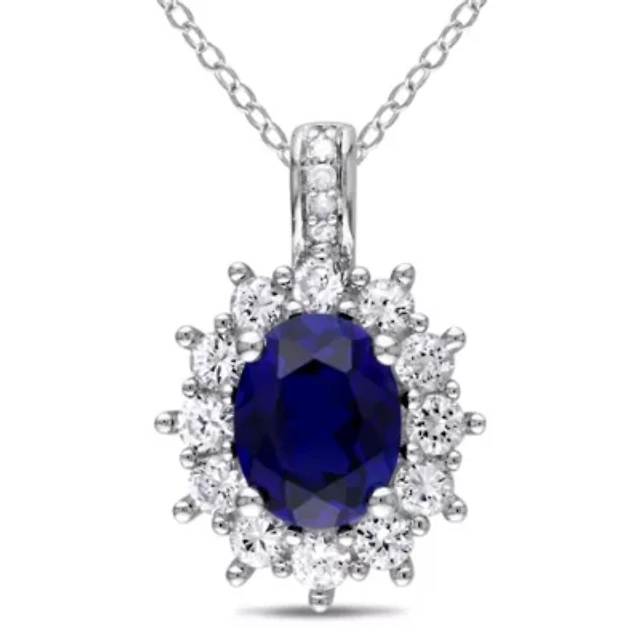 Sapphire (7/8 ct. t.w.) and Diamond Accent Pendant Necklace 14k Yellow Gold (Also Ruby & Emerald)